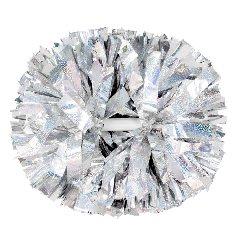Hooshing 2 Pack Pom Poms Cheerleading Professional Holographic Silver Spot with Baton Handle for Team Spirit Sports Cheering