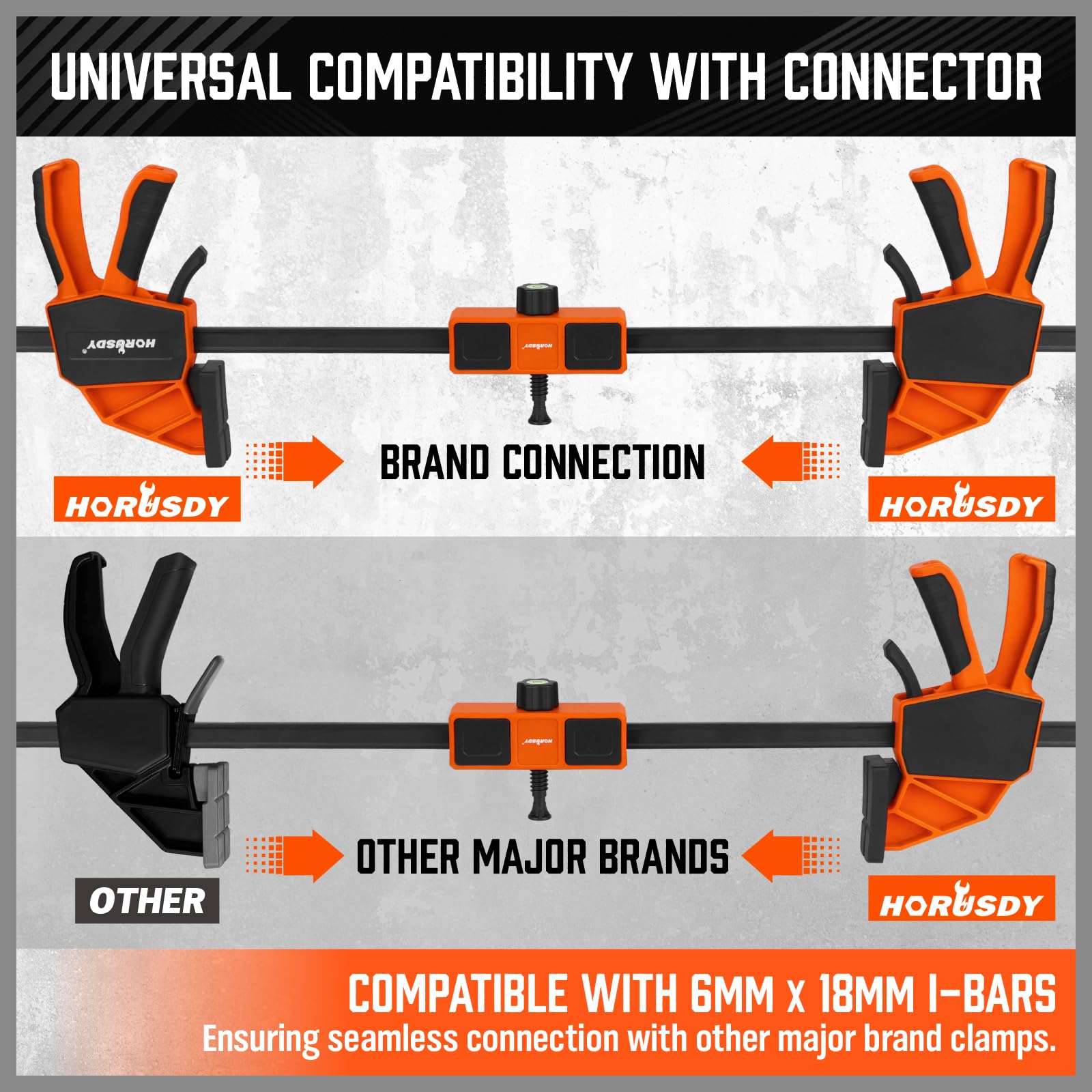 • UNIVERSAL COMPATIBILITY WITH CONNECTOR - Even if you've purchased clamps from other major brands, HORUDSY bar clamps come with a specially designed connector that fits 6mm x 18mm I-bars, ensuring seamless compatibility. Expand your toolkit effortlessly and work with confidence