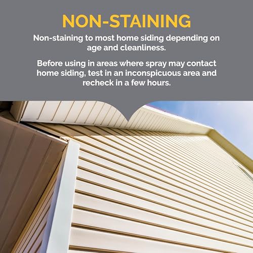 • NON-STAINING: This product is non-staining to most home siding depending on age and cleanliness – before using in areas where spray may contact home siding, test in an inconspicuous area and recheck in a few hours.