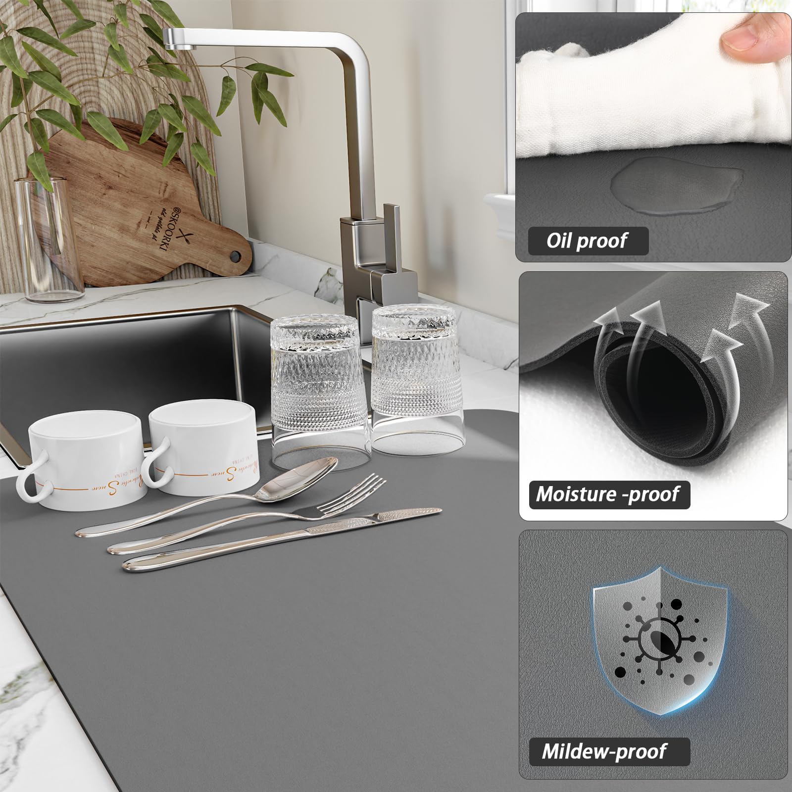 HotLive Dish Drying Mat for Kitchen Counter, Heat Resistant Drainer Mats with Non-slip Rubber Backed, Hide Stain Kitchen Super Absorbent Draining Mat, Easy to Clean Dish Rack Pad, Dark Grey 16"x18"
