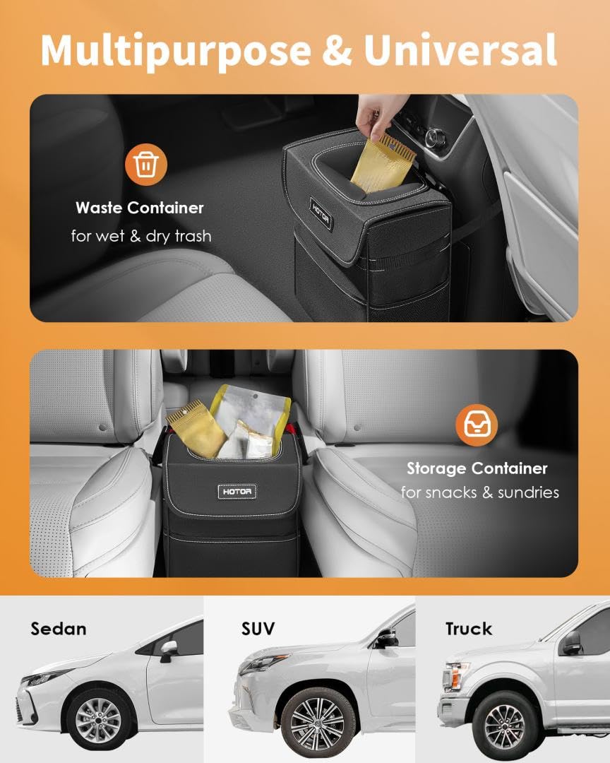 HOTOR Car Trash Can - Leak-Proof Car Organizer and Storage Bag for The Back/Front/Console of Any Cars,Sedans, SUVs & Trucks Easy-to-Install Car Accessory Interior