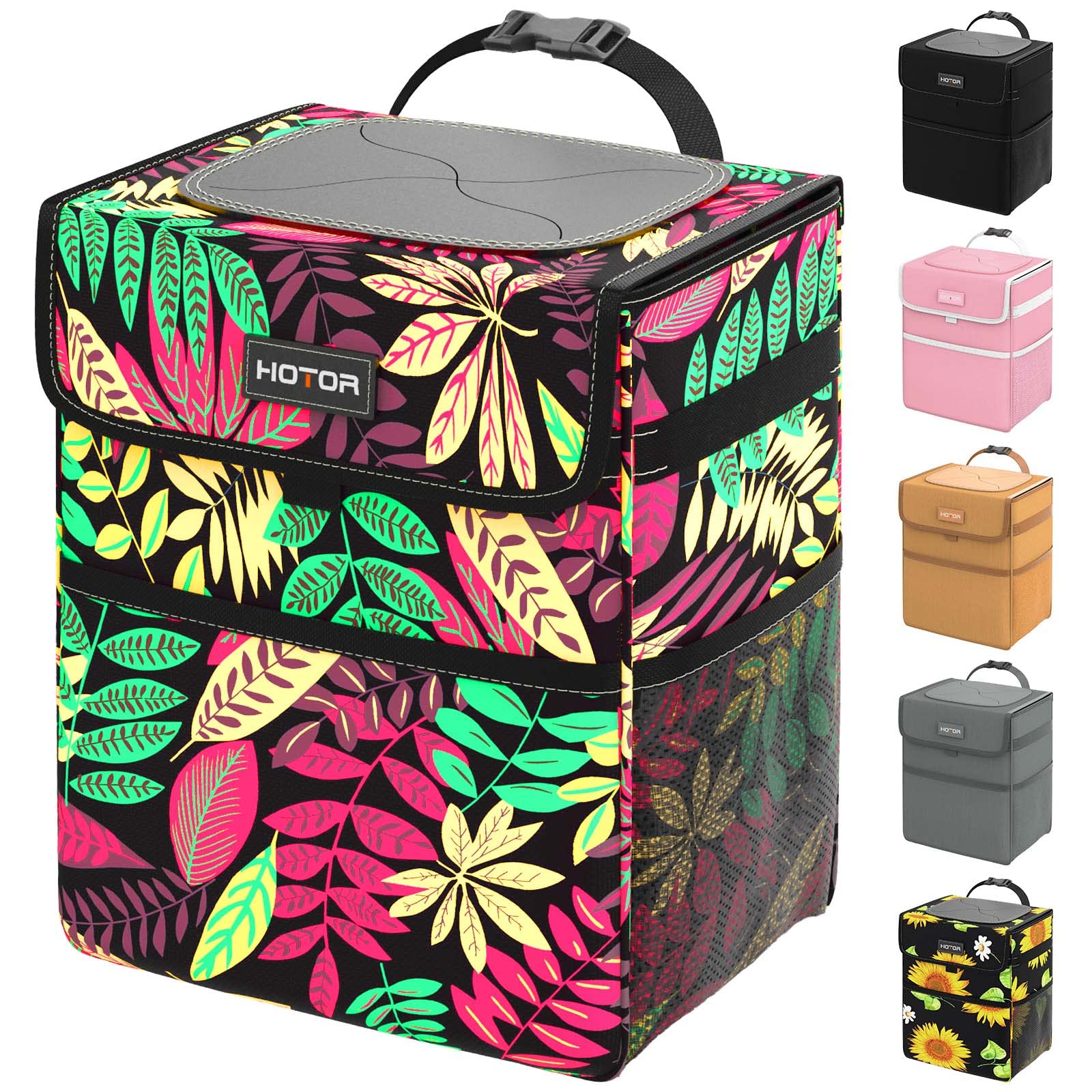 HOTOR Car Trash Can - Leak-Proof Car Organizer and Storage Bag for The Back/Front/Console of Any Cars,Sedans, SUVs & Trucks Easy-to-Install Car Accessory Interior, Leaves Print