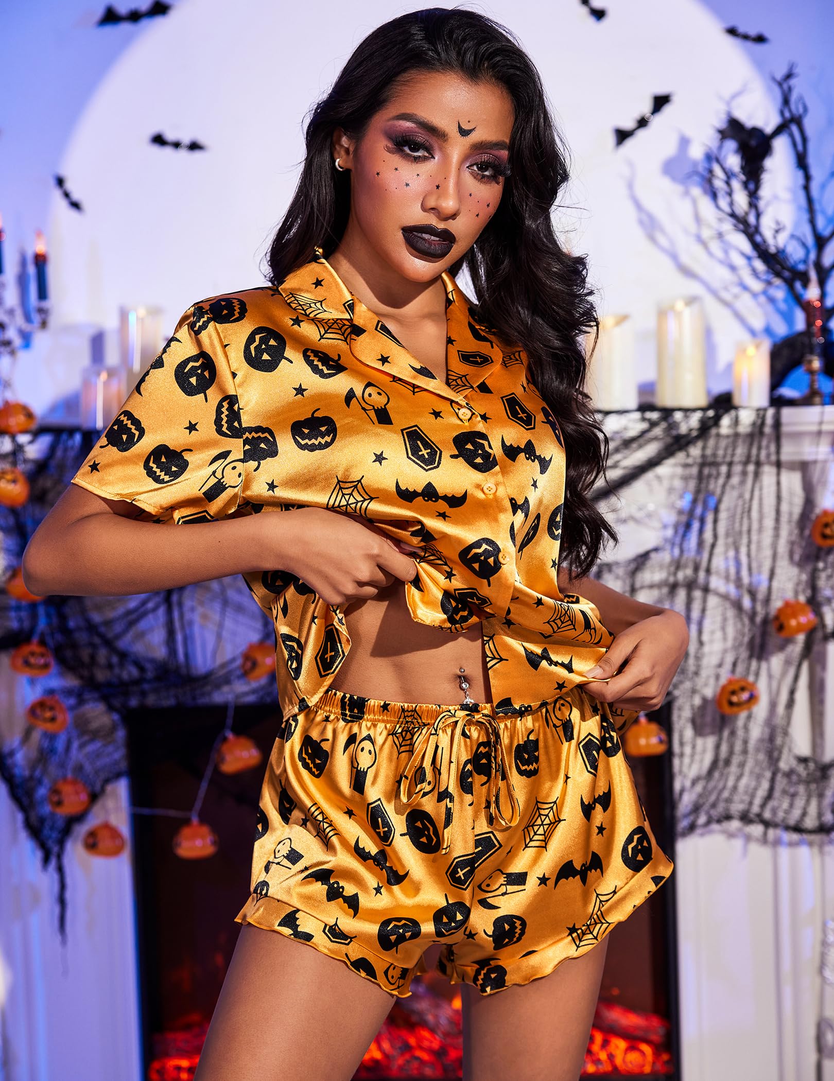 HOTOUCH Womens Halloween Pajamas Soft Silk Pajamas Stain Button Down Set Ruffle Loungewear