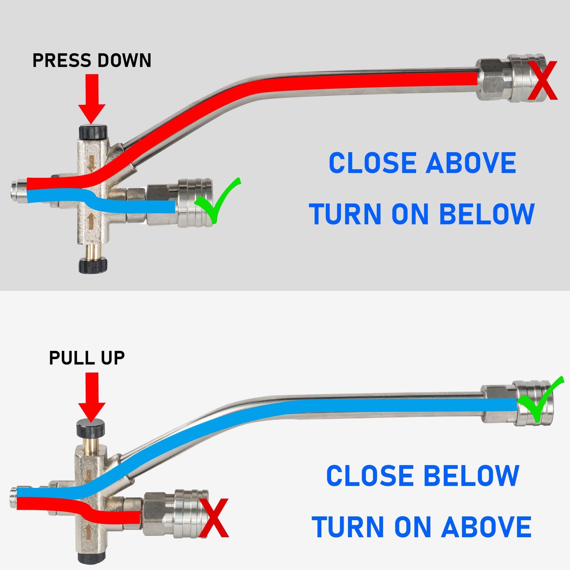 • Effortless Switching: Quickly switch between foam and water modes using the shuttle valve. No need to remove or replace nozzles. Note: Turn off the pressure washer gun when switching modes