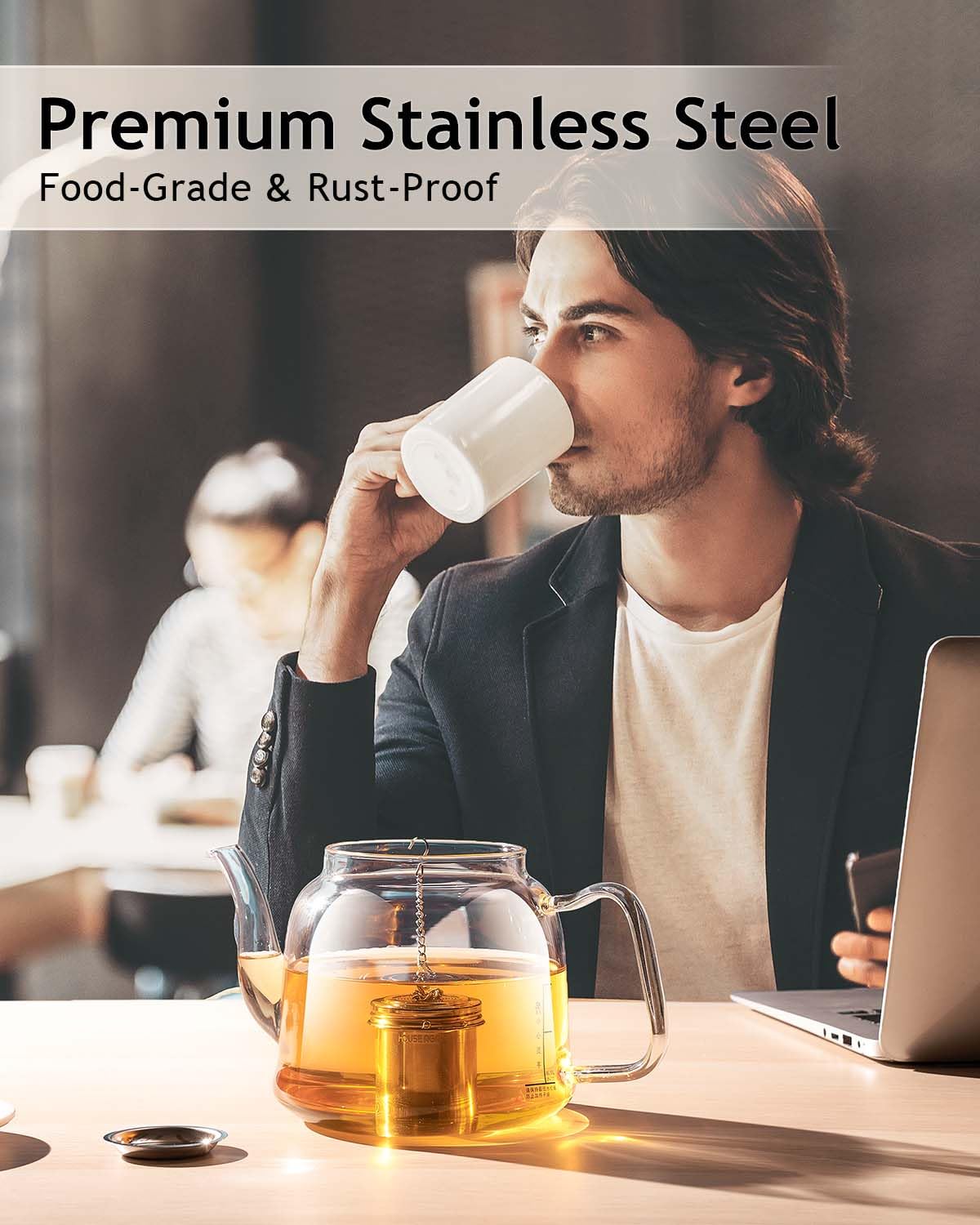 • High-Quality Materials: Made of 304 food-grade stainless steel, loose tea steeper ensures that there is no metallic taste on your tea or coffee and it's not easy to rust for years of use. Moreover, it’s easier to be cleaned. Compared with disposable tea bags and paper filters, tea infuser is money-saving and eco-friendly.