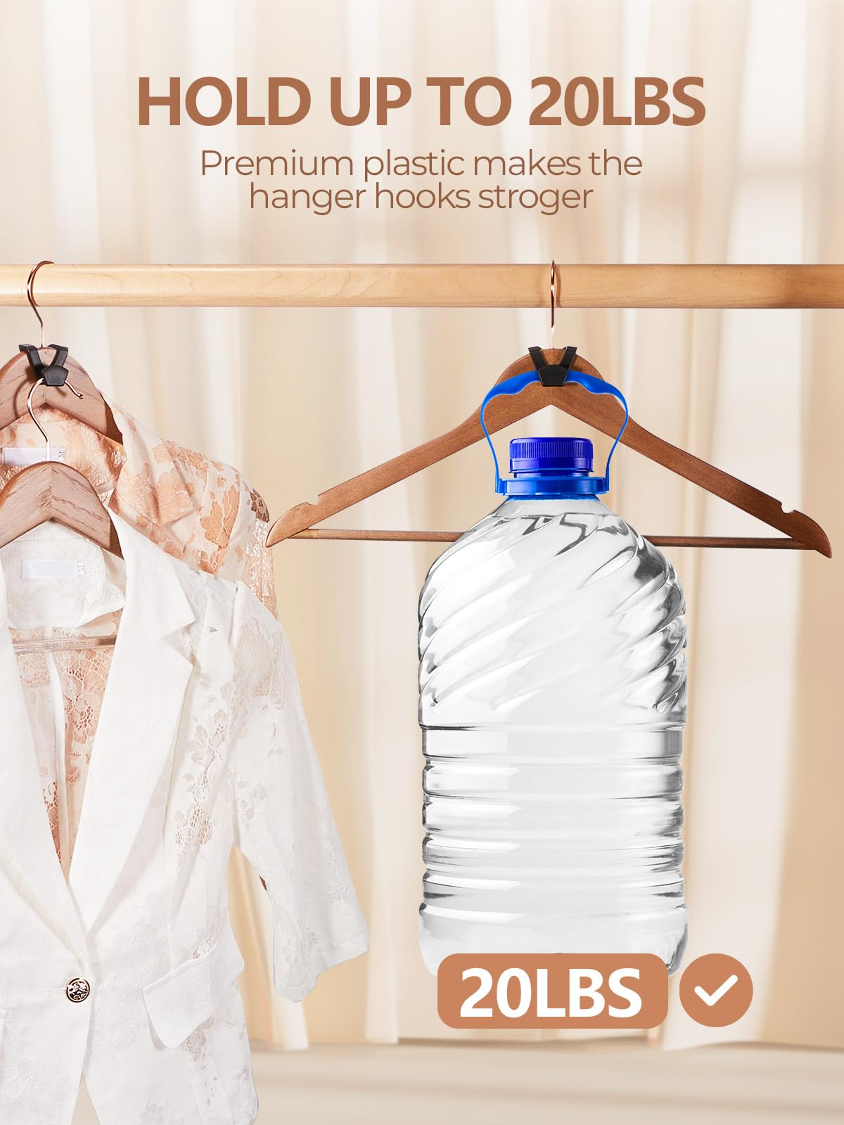 • 【Premium Hanger Hooks】Made of high quality plastic, no peculiar smell, the hanger connector hooks are strong enough to hold the heaviest items up to 9kg /20lb. The clothes hangers hooks have a smooth surface and rounded corners that prevent you from getting scratched. The triangular structure makes the hooks more stable for hanging items.