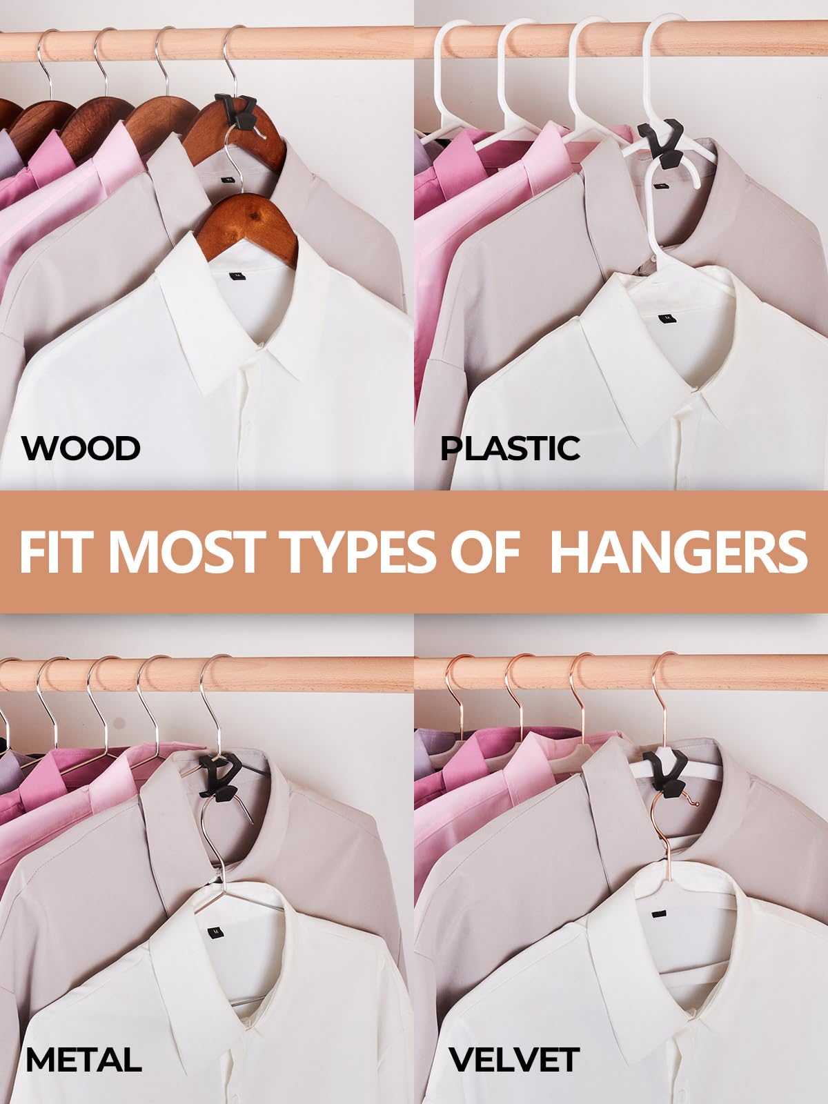 • 【Home and Dorm Essentials 】These ultra space saving hanger hooks measure 1.6”x1.3”x1.2”(LxWxH) and are suitable for many different kinds of hangers, including plastic hangers, velvet hangers, wooden hangers, metal hangers, sponge hangers, as well as baby clothes hangers, pants hangers, and skirt hangers. Our magic hangers can be used not only houses but suitable for apartments and dorm or other limited spaces, dorm room essentials for college students girls.