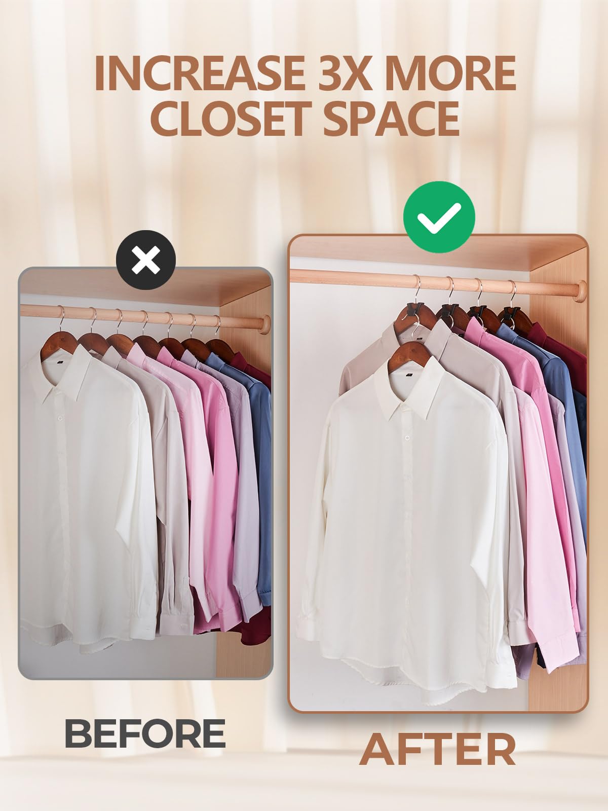 • 【Multipurpose Hanger Hooks】In addition to hanging clothes, the hanger hooks can also be used to hang bags, hats, ties, etc. You use the cascading hanger hook to coordinate your clothes and accessories. Easily organize your clothes by season, style, type and color, and say goodbye to a narrow or cluttered wardrobe.