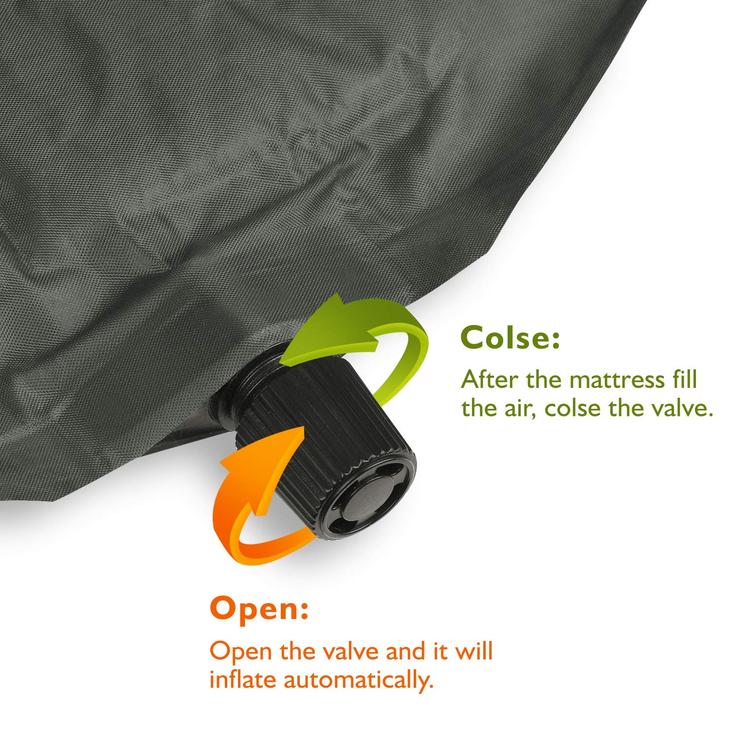 • Self-inflating Design: Free-flow valve inflates the mat with no air pump required.