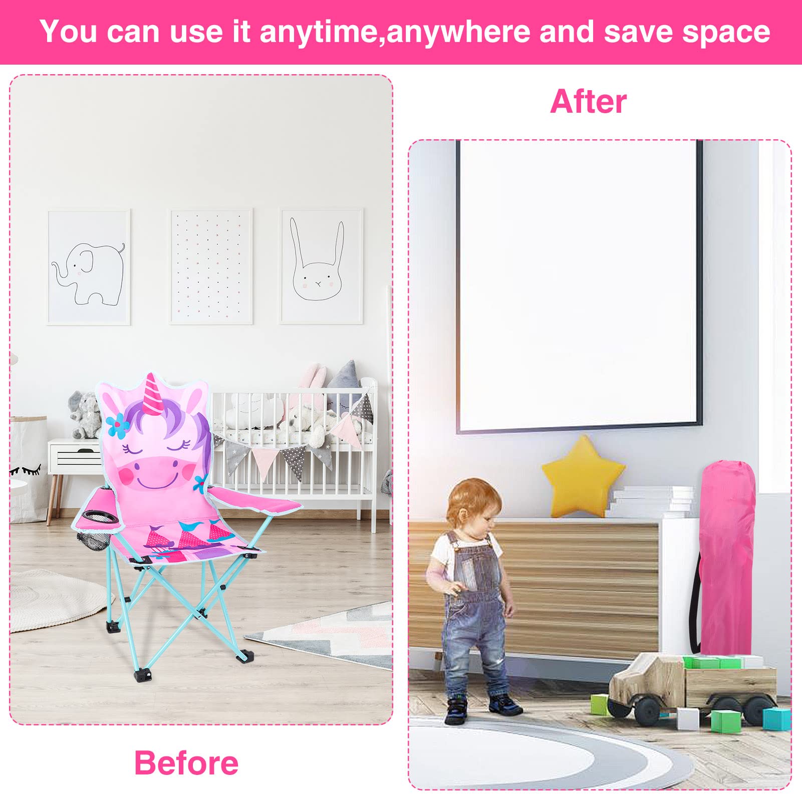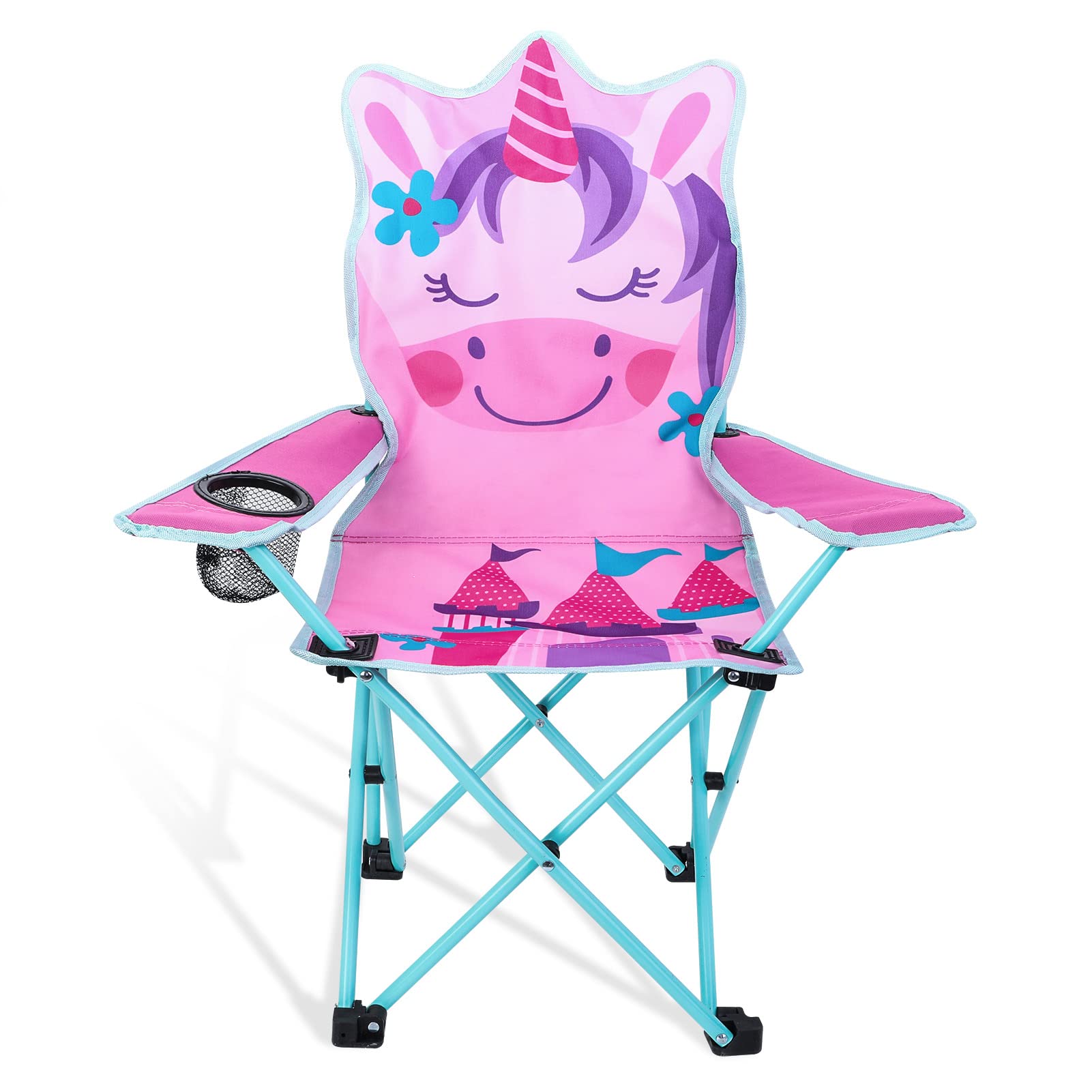 KABOER Kids Outdoor Folding Lawn and Camping Chair with Cup Holder and Carrying Bag, Children's Camping Chairs for Outdoor Beach Travel (Pink Unicorn)