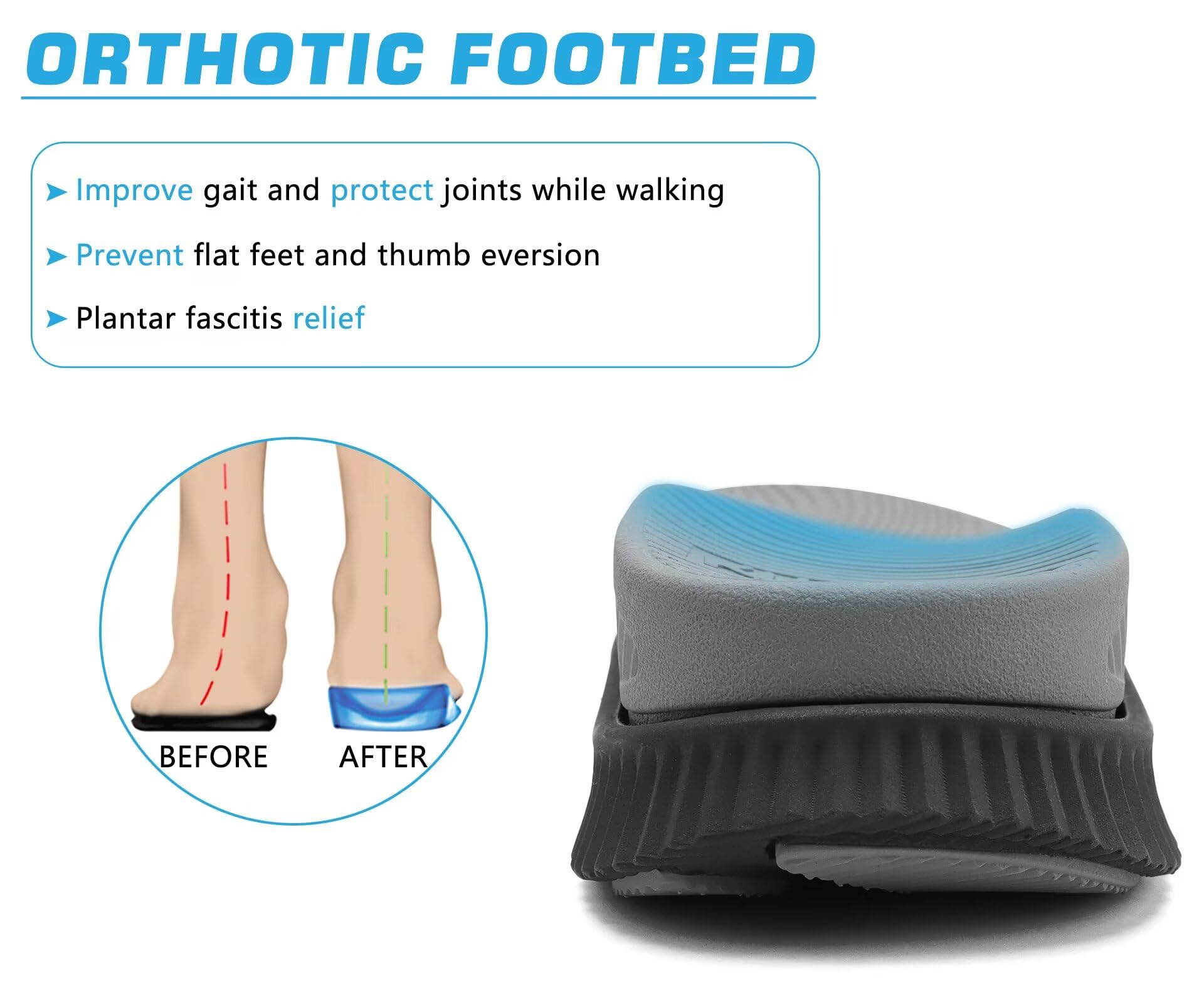 • 【Mens Hiking Outdoor Sandals】KuaiLu adopts an ergonomic Arch Support design that disperses foot pressure and relieves foot fatigue. “Orthotic” footbed help protect joints during walking, improve gait, Plantar Fasciitis Relief, and prevent foot problems such as flat feet and thumb eversion.