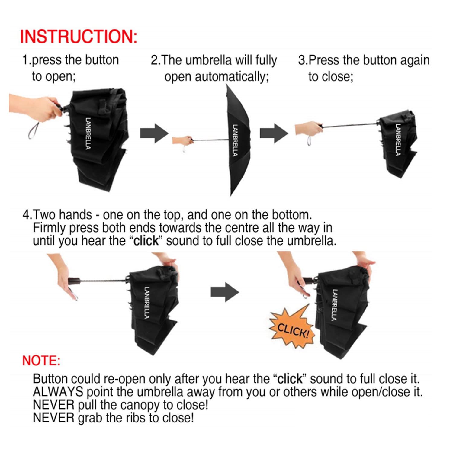 • CONVENIENT AUTO OPEN/CLOSE IN ONE SECOND: Just push the button once to automatically open and press again to instantly fold the canopy closed. You do not need to wait another second to open the umbrella when you get out of your car in the rain, especially in heavy rainfall, even when your hands are full of things.