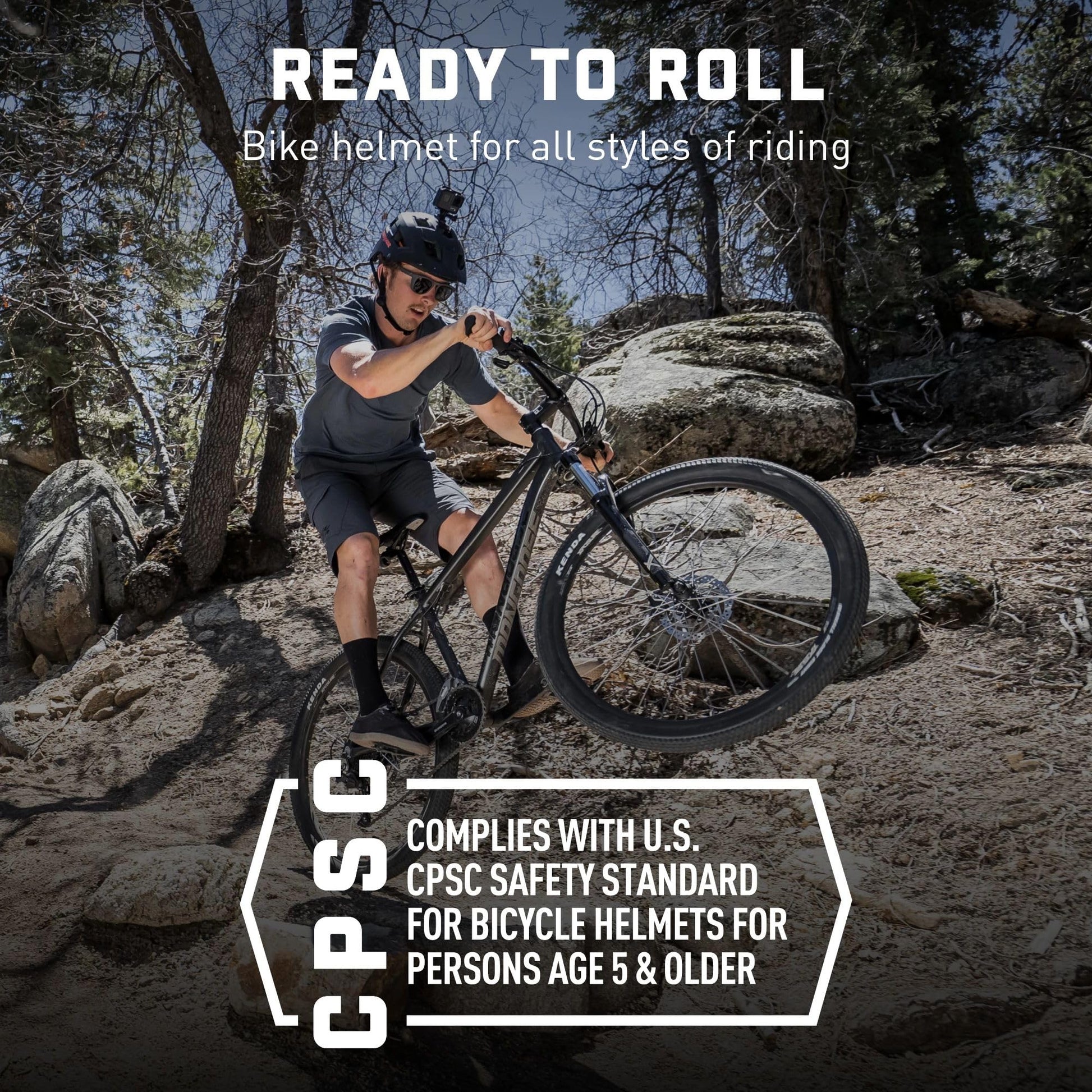 • BUILT FOR ADVENTURE: Complies with U.S. CPSC Safety Standard for Bicycle Helmets for Persons Age 1 and Older (Extended Head Coverage). This mens and womens mountain bike helmet features a durable ABS outer shell, 360° pads and adjustable straps.