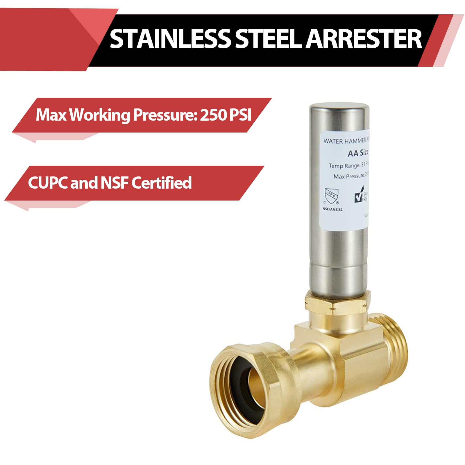 • 2 Pieces Stainless Steel Water Hammer Arrester For Washing Machine Supply Valves or Directly to Washing Machine Tube Connection: