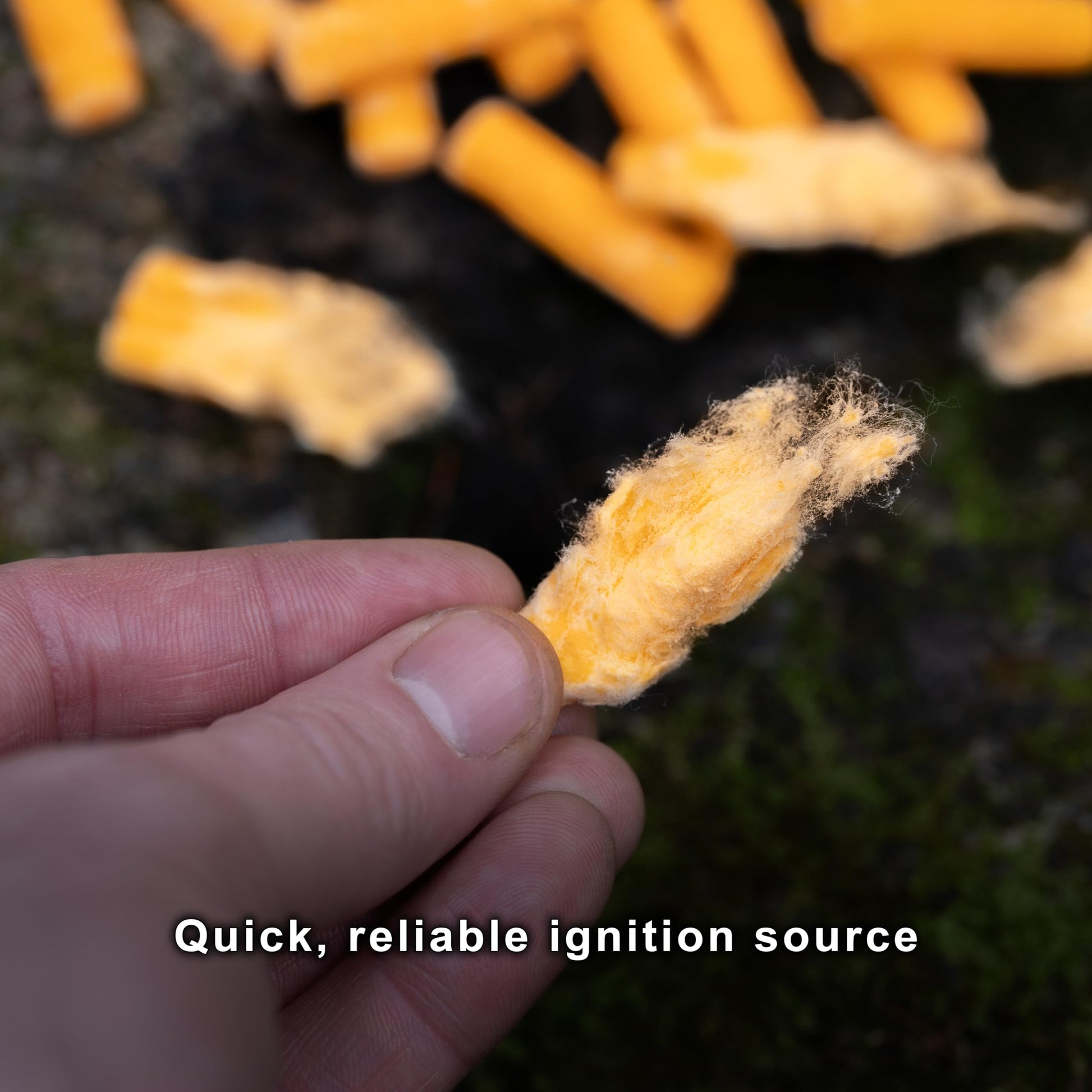 Details: The Procamptek Fire Plugs contain our exclusive wax solution, which coats the cotton core, providing a protective layer that extends throughout. These plugs can be effortlessly fluffed into efficient fire-starting tinder, suitable for all seasons and weather conditions. Users have reported an average burn time of up to 5 minutes for a single Fire Plug, offering ample time to ignite your tinder. While ordinary cotton tab fire starters on the market can be effective unless they get wet, PROCAMPTEK Fire Plugs take the concept to a whole new level, like cotton tabs on steroids. These Fire Plugs represent a remarkable advancement in our premium line of fire starting products. The versatility of these plugs allows for countless ways to incorporate them into your diverse kits, offering endless possibilities. With just a tiny Fire Plug, along with a sparking mechanism, you have all you need to easily ignite a fire whenever necessary.