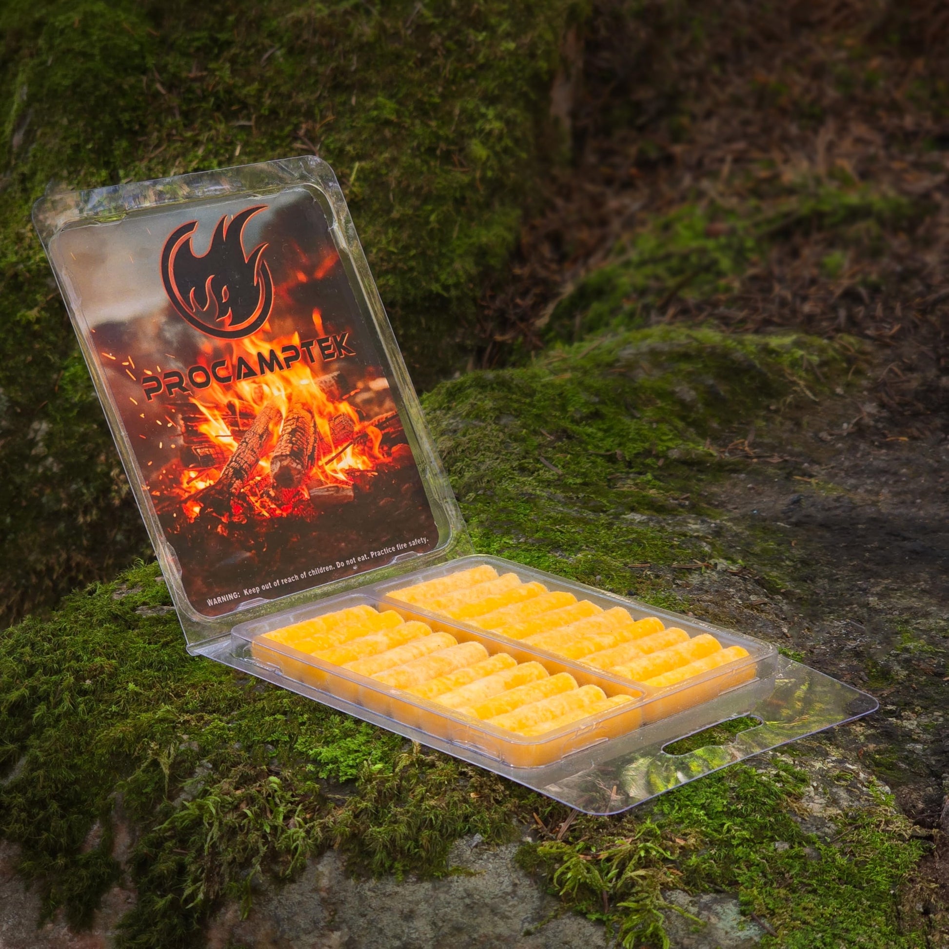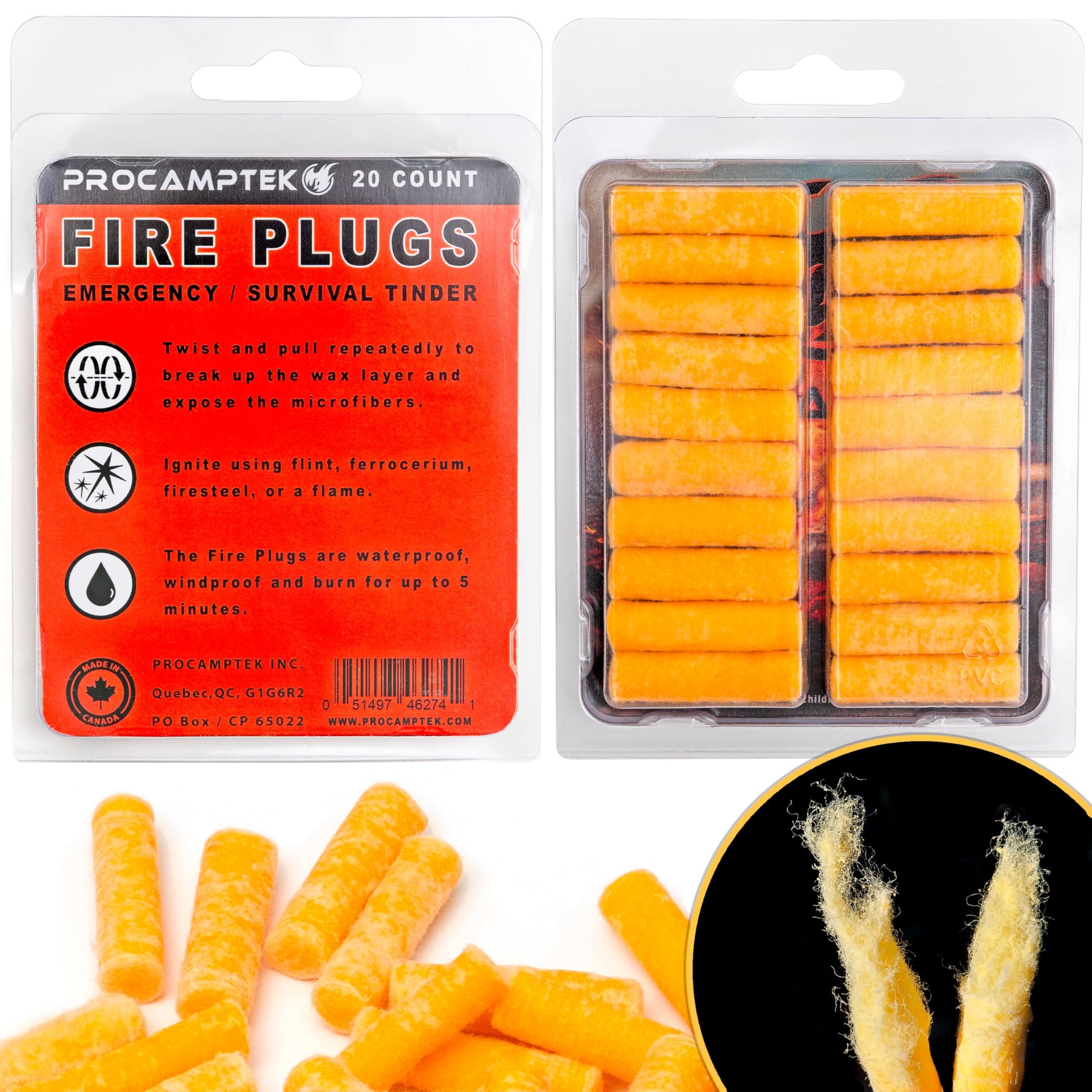 Procamptek Fire Plugs 100% Waterproof Fire Starter for Emergencies, Survival, Campfire, Fire Pits, Grills | Burns 5+ Minutes, All Natural, Non-Toxic (20 Fire Plugs)
