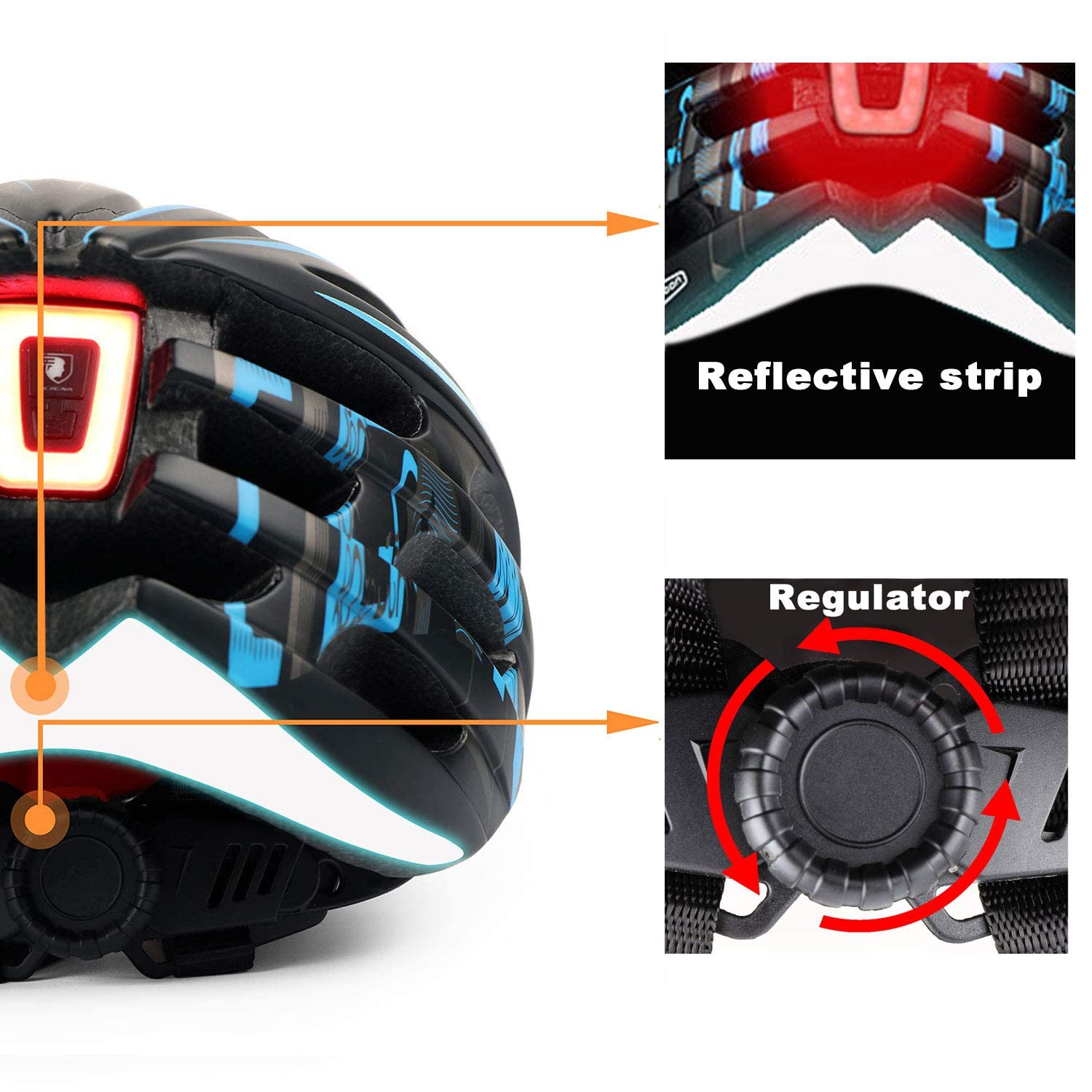 • 【USB Rechargeable Rear Light&Reflective Sticker】The USB light has 9 light modes, including constant, slow flash and fast flash, and a reflective sticker is attached to the back of the bicycle helmet to alert the rear vehicles and help the rear cyclists clearly identify the direction, ensuring the highest degree of protection and visibility on urban roads, making night riding safer. The USB light is fully charged in just 2 hours and last for 10 hours. A USB cable is also included.