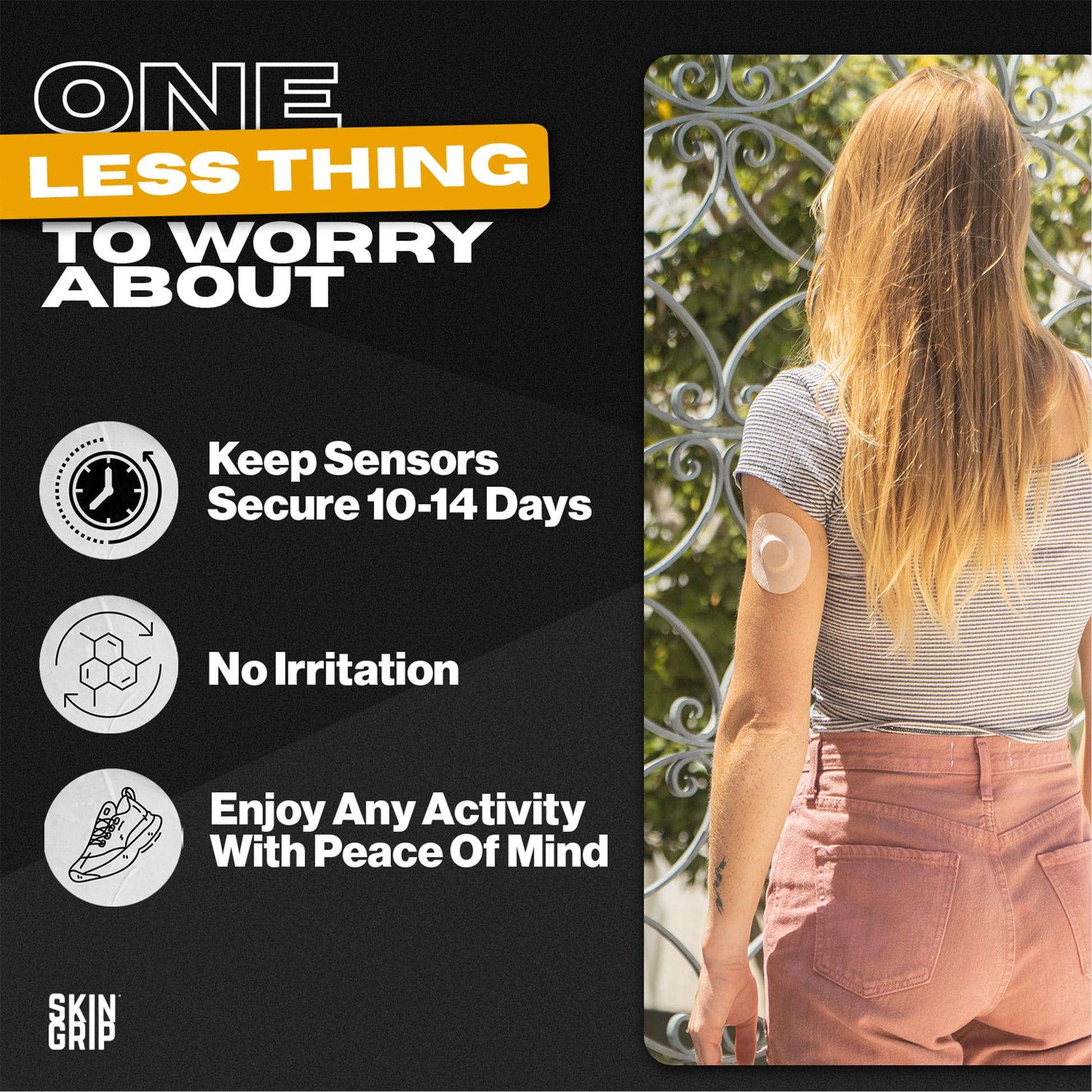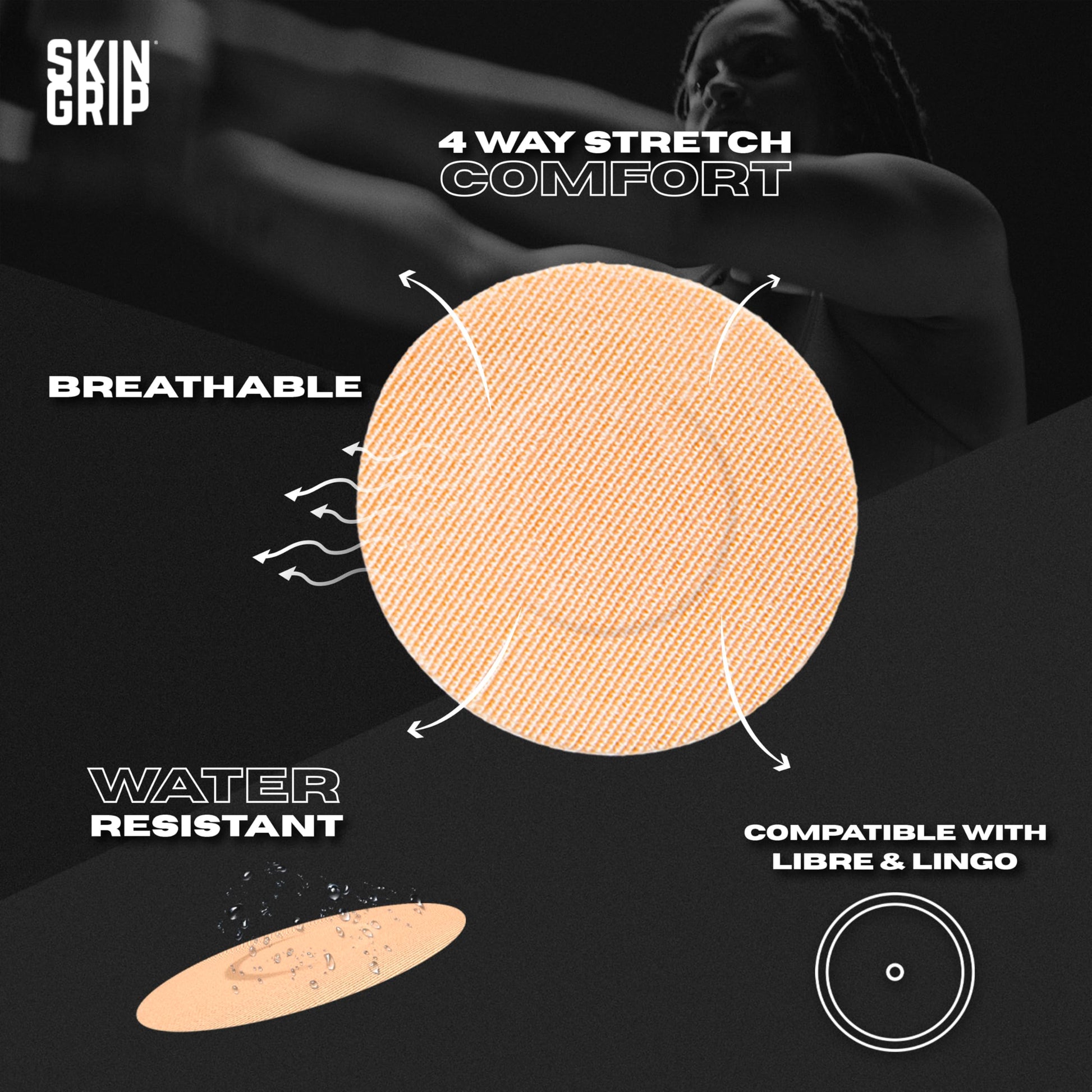 Skin Grip Freestyle Libre 2 Sensor Covers & Lingo CGM – Waterproof and Sweatproof Adhesive for 10-15 Days, Pre-Cut Medical Tape, Continuous Glucose Monitor Patch – 20 Pack, Tan