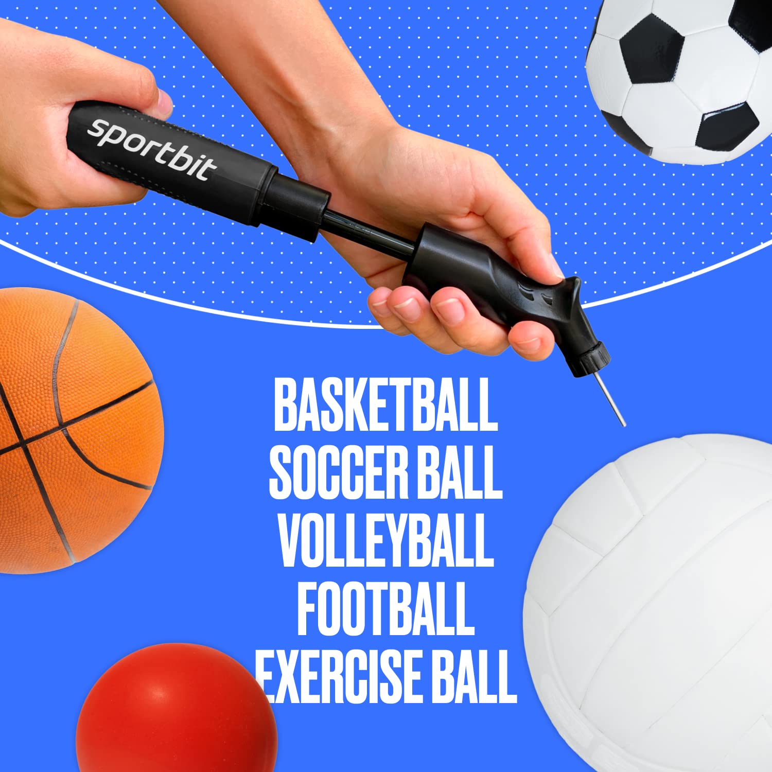 SPORTBIT Ball Pump for Sports Balls - Push & Pull Inflating System - Hand Pump for All Exercise Balls - Volleyball Pump, Basketball Inflator, Football & Soccer Ball Air Pump - Goes with 5 Needles Set