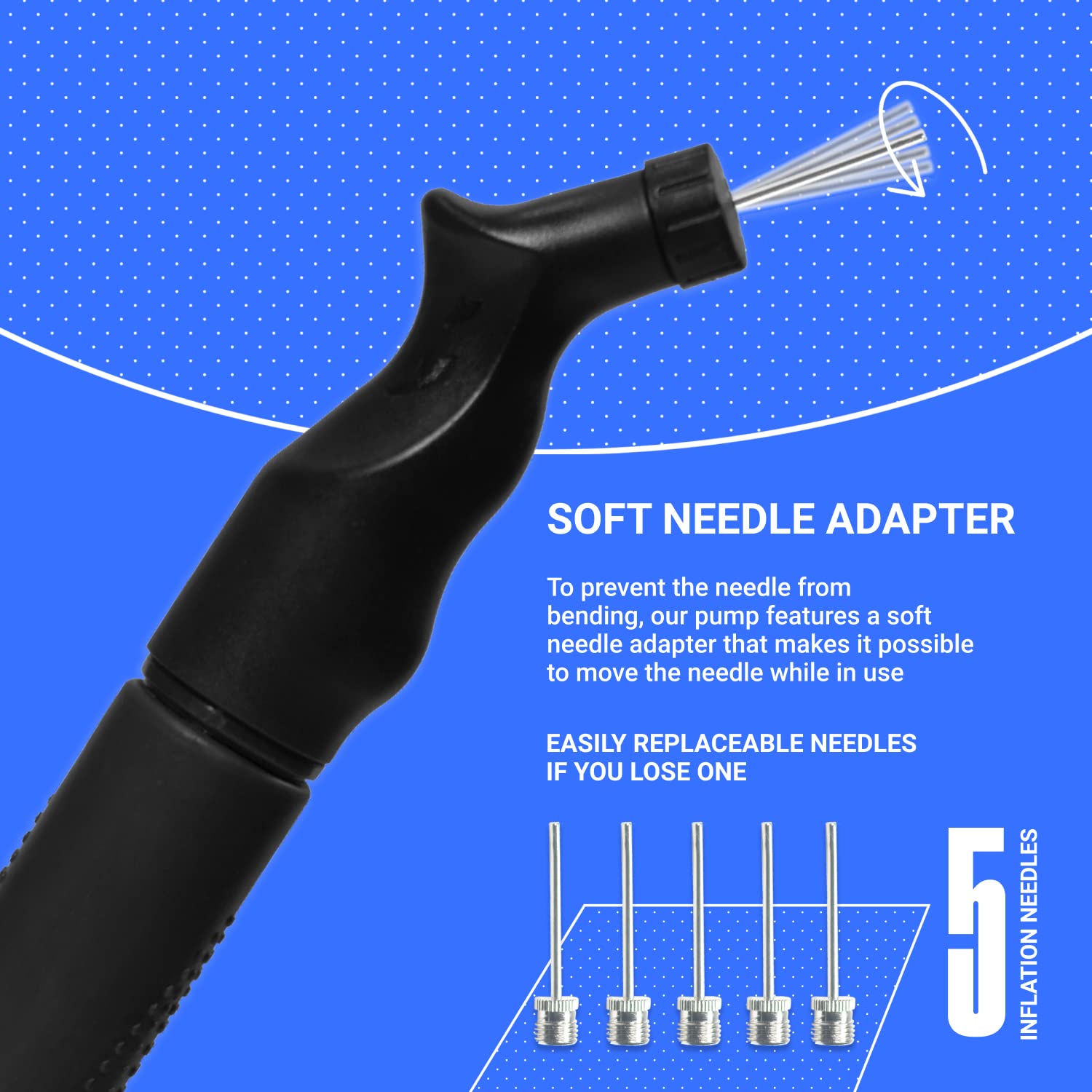 • Needles Don’t Bend - Our unique soft needle plug system prevents the needles from bending; This SportBit ball air pump is easy to use