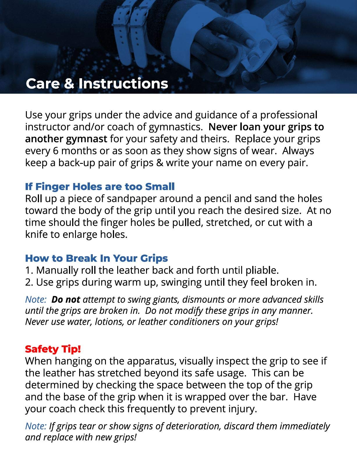 • SAFE FOR ALL GRIPPERS: The innovative finger locking system integrated into these gymnastics grips helps to minimize shifting and keeps the fingers from slipping out of the finger holes during use. These are grips you can wear and use while training, so you can perform your best while your hands remain protected.