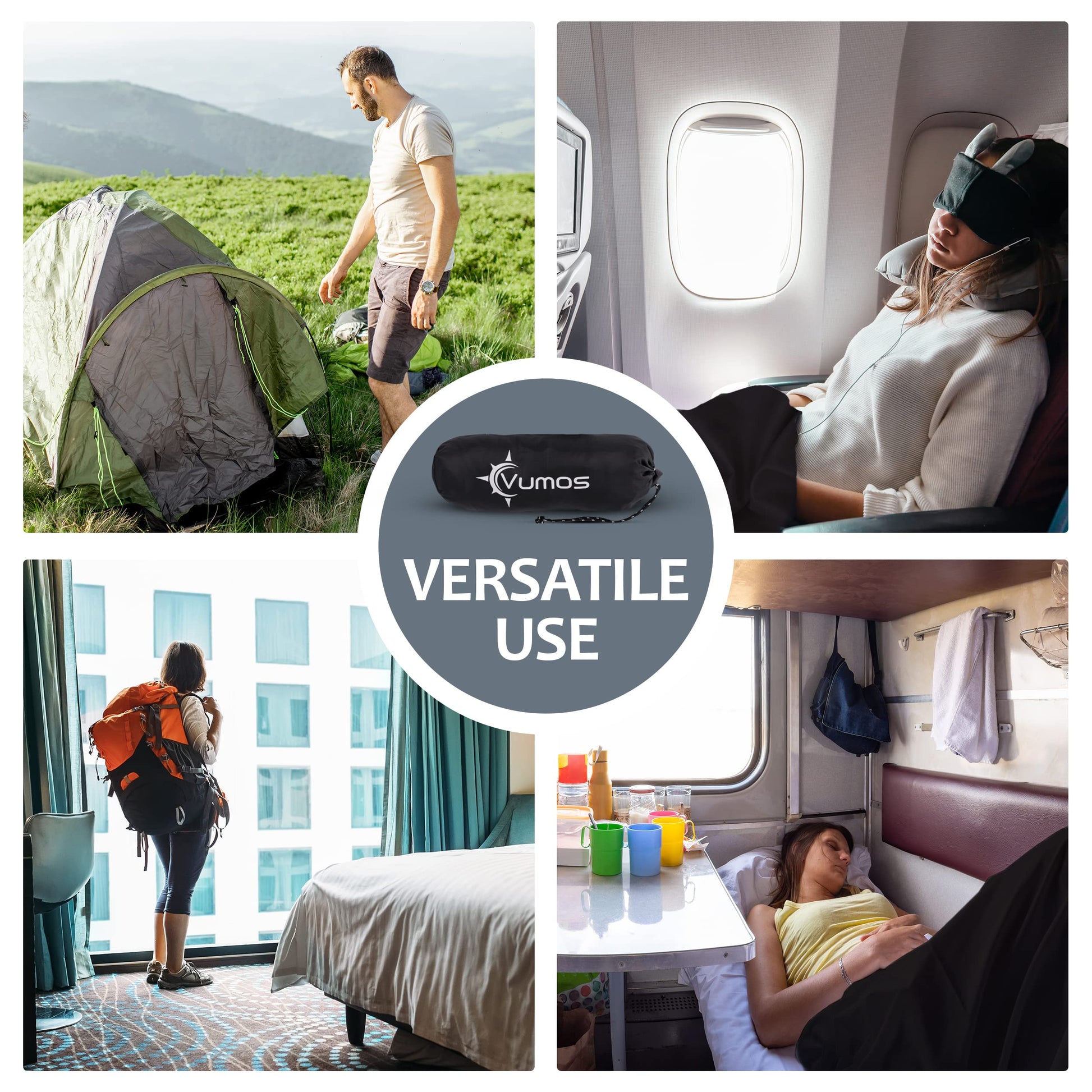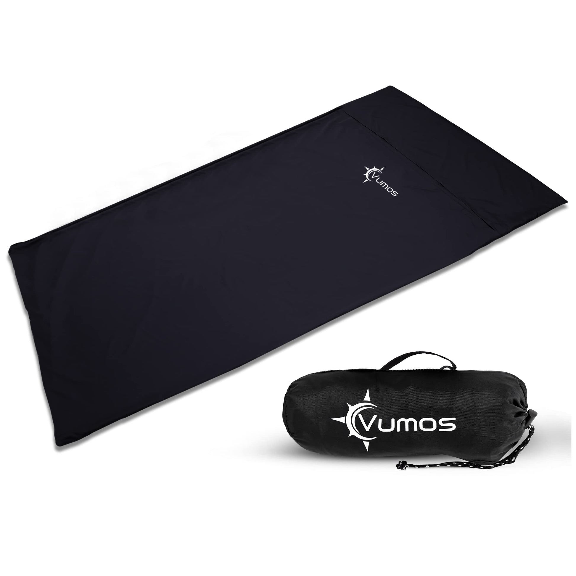 Vumos Sleeping Bag Liner and Camping Sheet - Silk Like Material for Travel - Has Full Length Zipper - Black