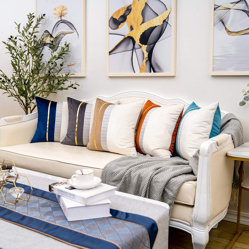 • Made of luxury velvet, the cushion case pillow cover with gold leather and silver gray tactile geometric pattern is fade resistant and stain resistant, feeling soft and comfy,and brightens up the room in a low-key, art deco way