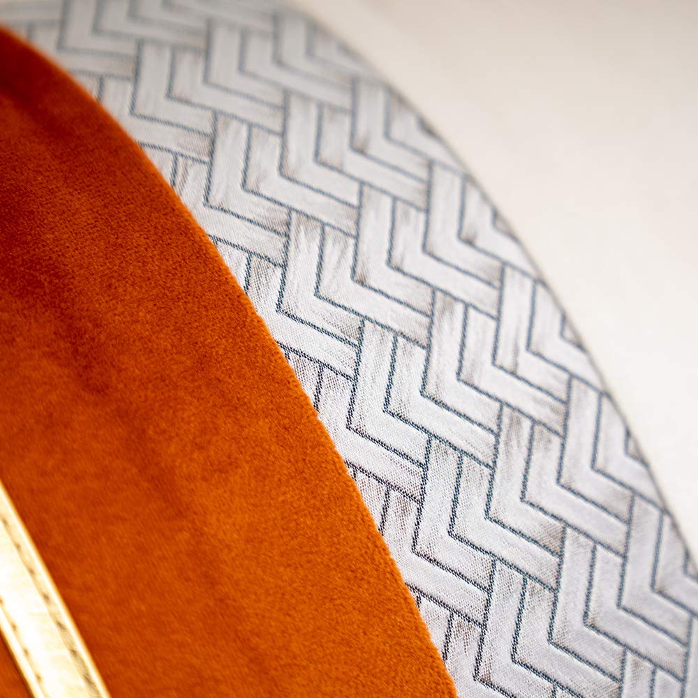 Yangest Burnt Orange Patchwork Velvet Throw Pillow Cover with Gold Striped Leather Cushion Case Modern Luxury Pillowcase for Sofa Couch Bedroom Living Room Home Decor,18"x18"