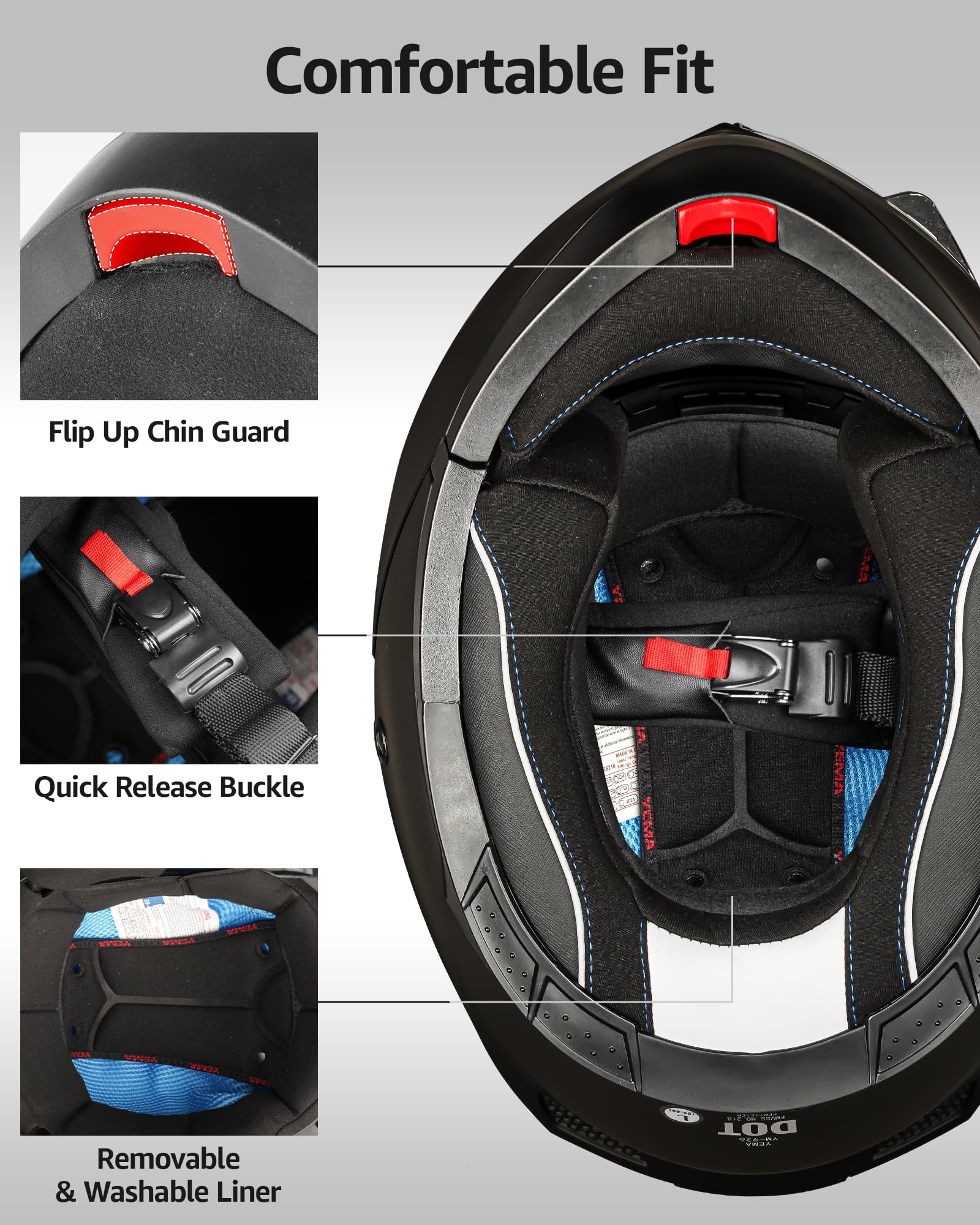 • Comfortable Inner Padding, Removable Washable Cheek Pads.