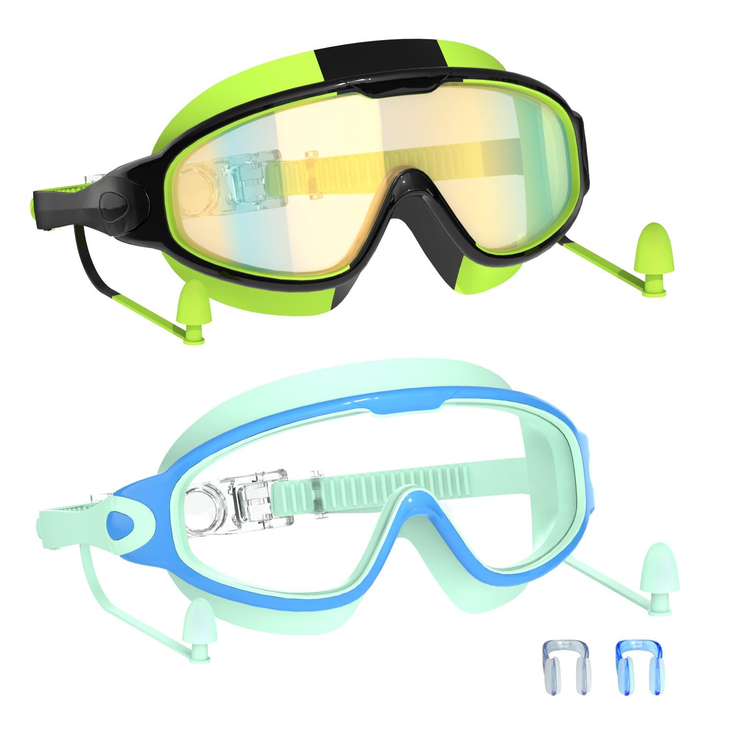 YLKJSWIM Swim Goggles for kids 3-15 with Earplugs Large Frame Anti-Fog/UV No Leaking Pool Water Swimming Goggles for Boys Girls Youth Toddler (2pcs)