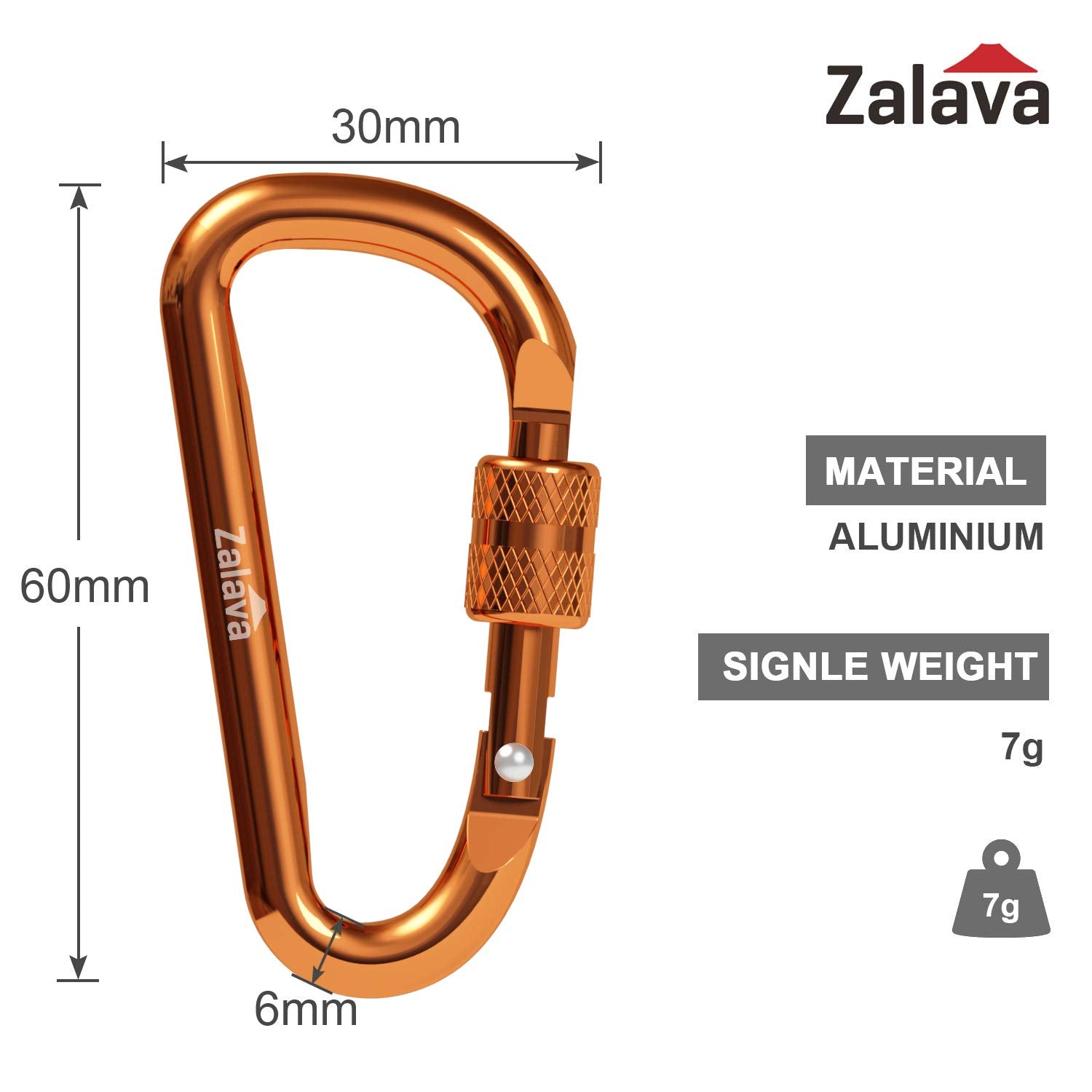 Zalava 6pcs 2โ€D-Clip Durable Locking Carabiner Keychain Clip with Hook